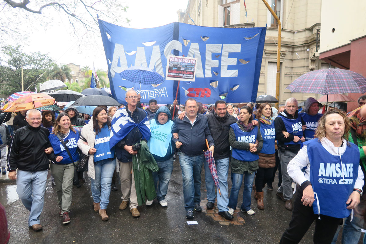 Apoyó el reclamo de apertura de paritarias, defensa del régimen previsional y la resistencia a las políticas de ajuste del gobierno nacional. Una importante delegación de Sindicatos Municipales participó con FESTRAM en la movilización organizada por AMSAFE y SADOP.